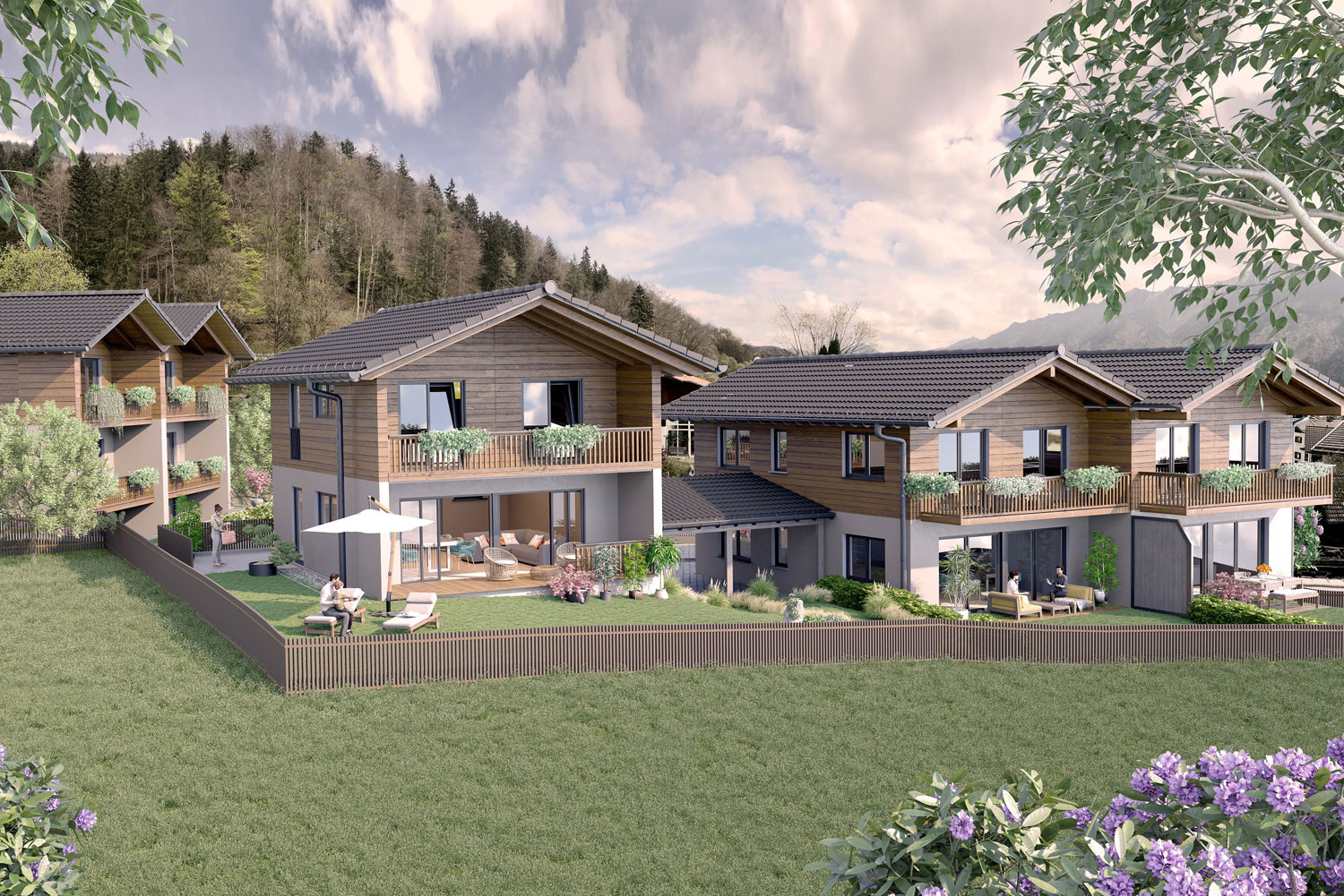 Mehrere hochwertige Einfamilienhäuser im Chalet Stil in Holzbauweise.